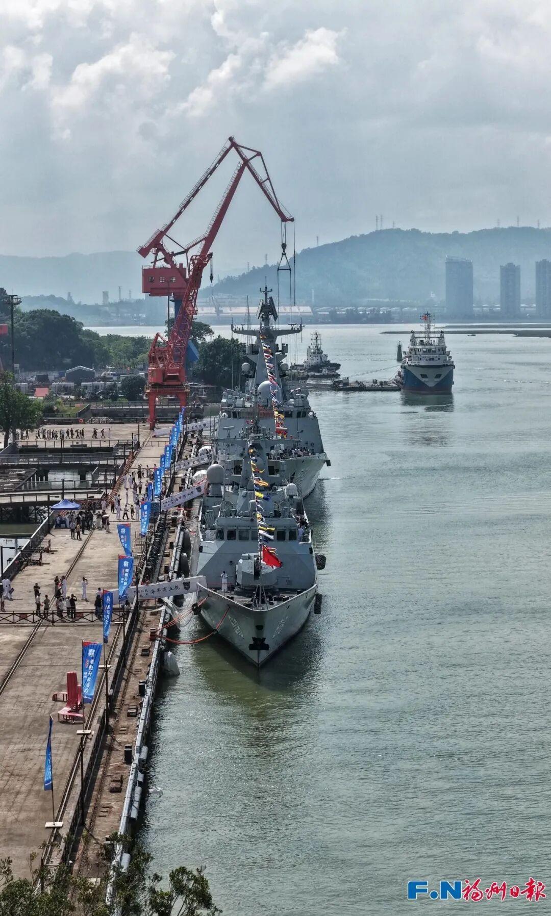 海军“宝鸡舰”“商丘舰”靠泊在位于马尾的中国船政文化园区铁水坪码头(船政码头),此前预约中签者步入开放场地、登上舰艇,感受钢铁战舰的魅力。