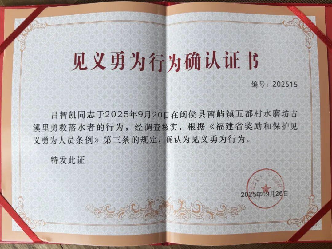 近日,吕智凯与徐翔的英勇事迹经相关部门核实,已被正式确认为“见义勇为”。