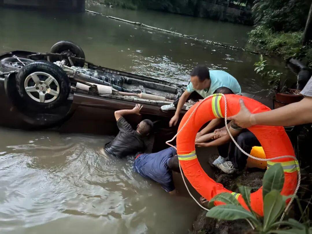 事发当时,吕智凯率先游向沉车,试图徒手拉开车门。“我试着掰开车门,那会儿我感觉驾驶员(伤者老周)抱住我的腿,我想把他拉出来,可力气不够。”千钧一发之际,徐翔也跳入水中增援。两人合力,终于将被困的老周从车中救出。随后,在更多赶到现场的救援者协助下,老周及其妻子被成功拉上岸。