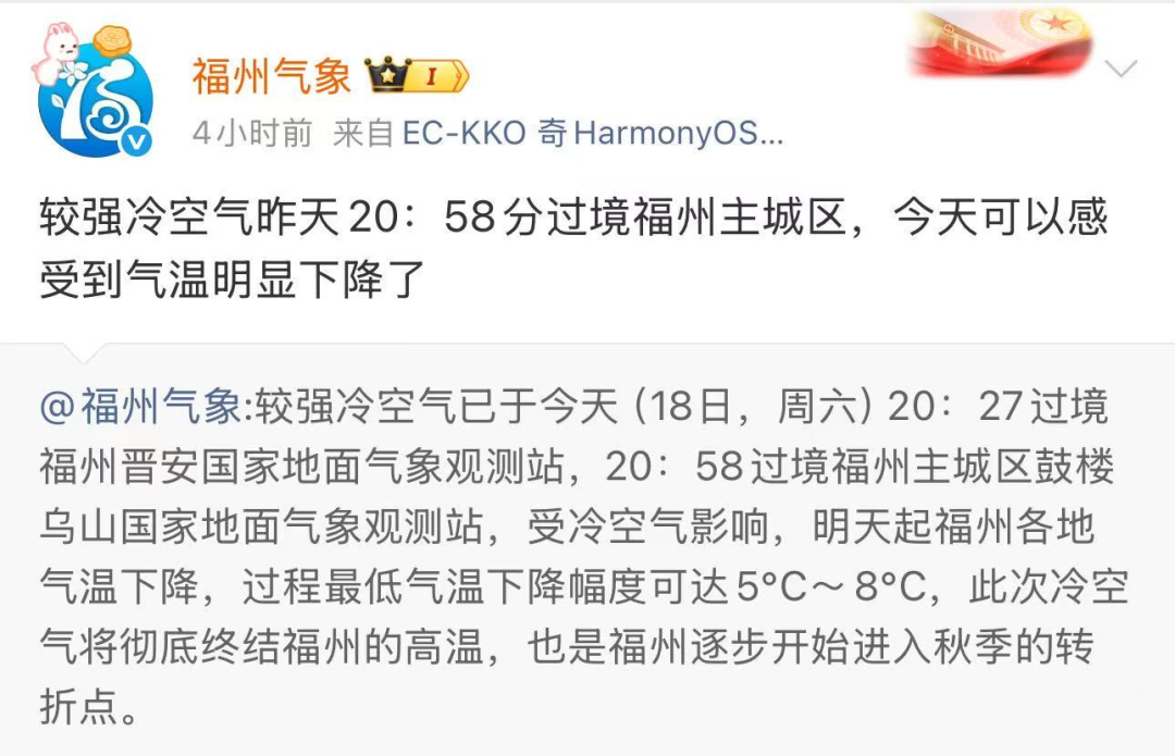 今天出门的你,有没有感觉到一丝凉意?不少福州的朋友都感叹:“福州,终于降温了!”