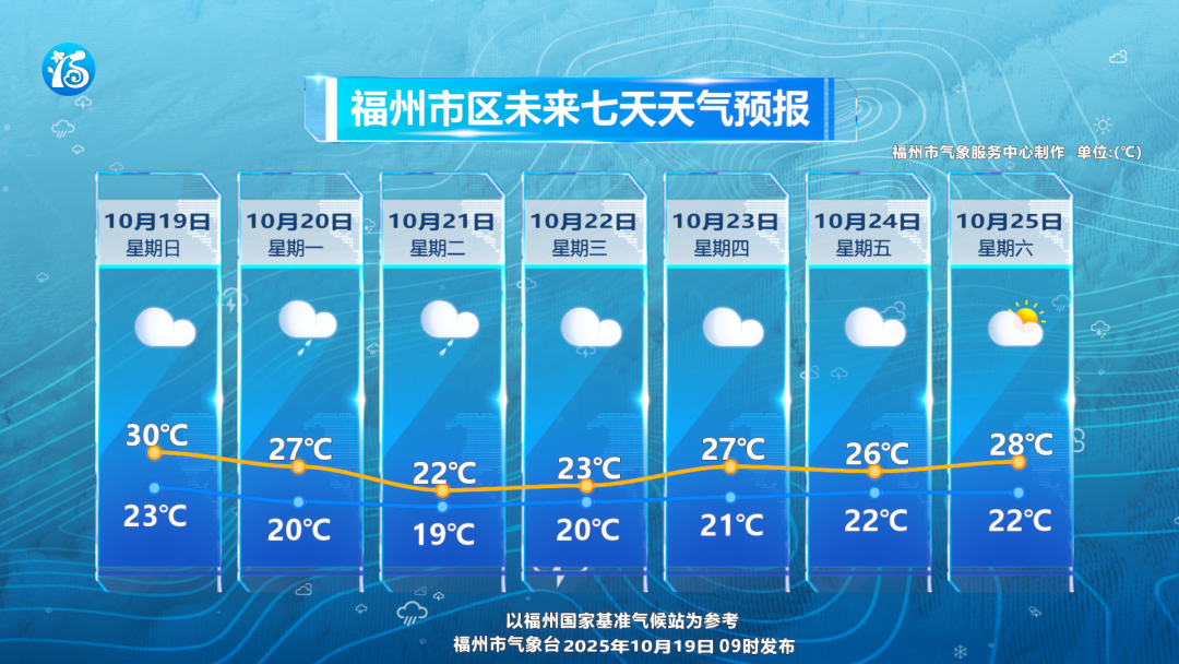 受冷空气影响,19日起福州各地气温下降,过程最低气温下降幅度可达5℃~8℃。此次冷空气将彻底终结福州的高温,也是福州逐步开始进入秋季的转折点。