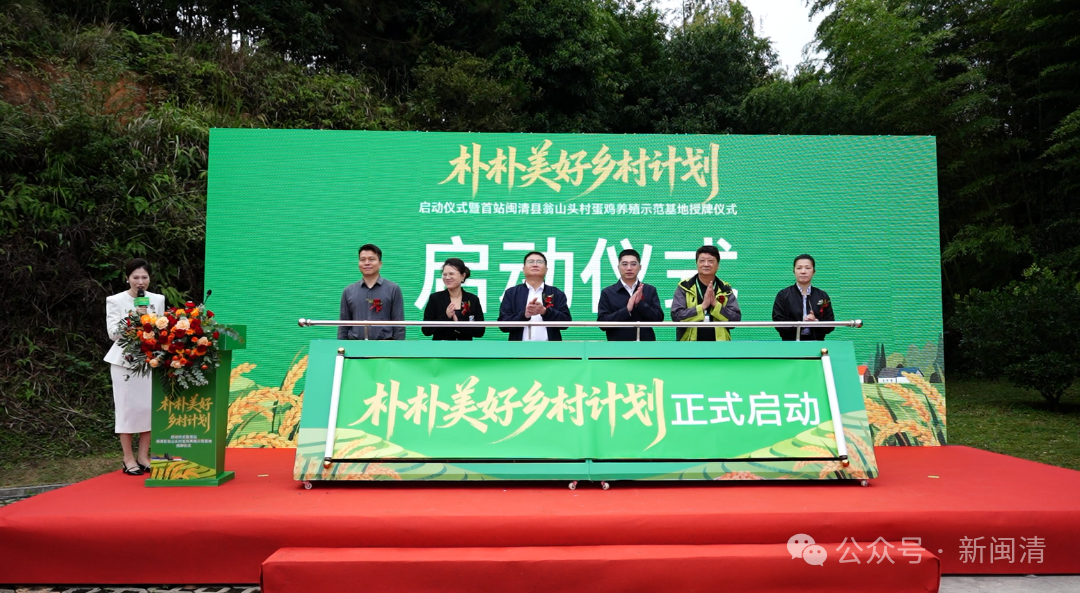 10月23日上午,“朴朴美好乡村计划”启动仪式暨首站揭牌仪式在下祝乡翁山头村杉村集团蛋鸡养殖示范基地举行。福州市农业农村局党组成员、三级调研员朱裕富,县政府副县长张兆雄等领导出席活动,并与朴朴超市联合创始人郑敏雯、杉村集团农业事业部总经理潘兆兴等企业代表共同为基地揭牌。