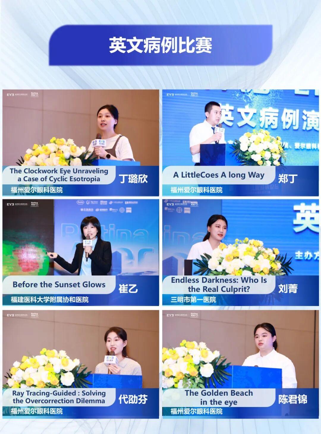 来自福建医科大学附属协和医院、三明市第一医院及福州爱尔眼科共6位优秀青年医师同台竞技,以扎实的专业知识与流利的英文表达,展现了新时代医疗人才的卓越风采,赢得现场阵阵掌声。