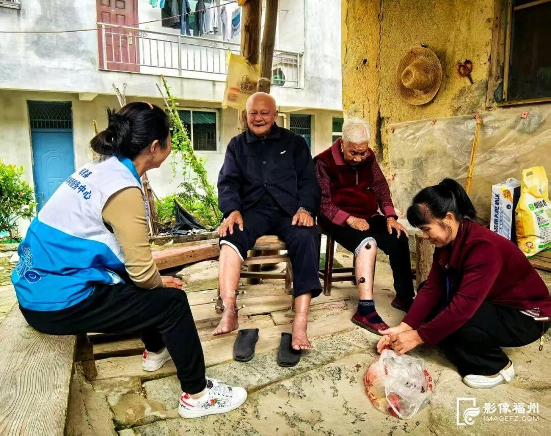 ▲护理员上门为章友水和岳依莲夫妇做艾灸 潘温祥/摄