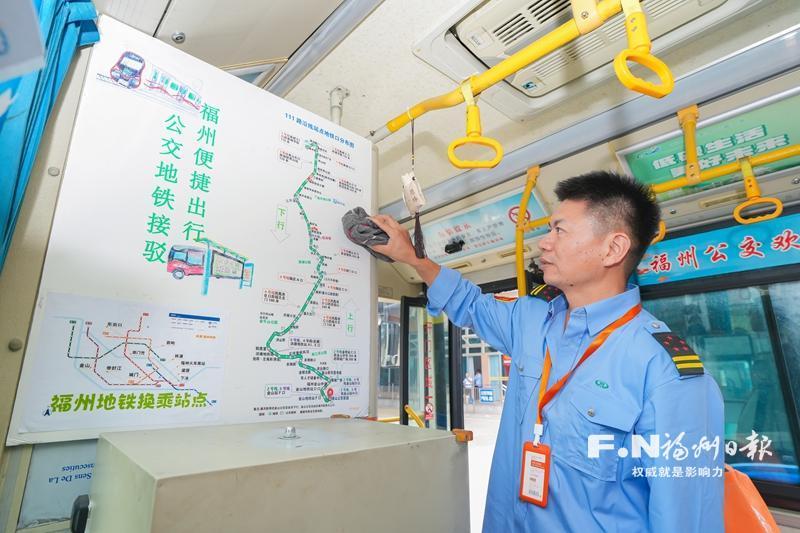 然而,比起这些惊险时刻,更打动人的是那些日常的温暖。每天,他总是提前到岗仔细擦拭驾驶室,连刹车踏板都要用毛刷清理干净;遇到老人上车,他总是耐心等待;见乘客在车上睡着,他会轻声提醒到站……正是这些看似微小的坚持,汇聚成了33万公里的安全记录,织就了福州城市记忆中的温暖篇章。