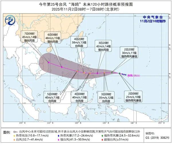 又有台风消息:今年第25号台风“海鸥”已于2日上午加强为强热带风暴。预计“海鸥”未来将持续西行,4日穿过菲律宾中部,5日移入南海东部海面上,最强可达台风级或强台风级,最终趋向越南中南部沿海。未来对福州无直接影响。