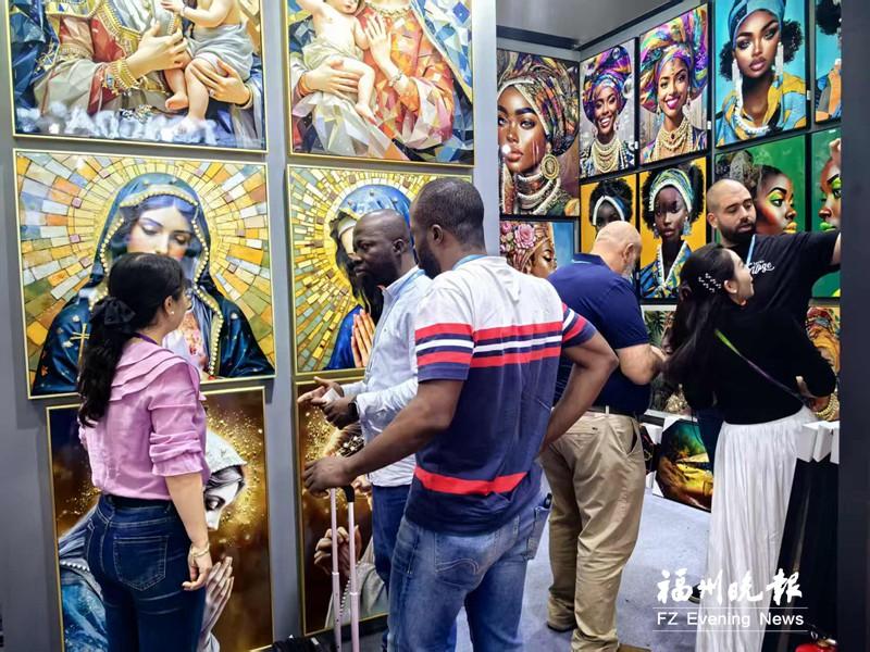 闽侯县博达工艺品有限公司成为本届广交会上的亮点。展位前洽谈、询价的外商络绎不绝。公司总经理王晓霞表示,百万美元订单的达成得益于企业持续的产品创新和对市场的敏锐洞察。公司核心团队多次赴国外考察,深入了解客户需求,推动产品升级。此次带来的手绘油画、装饰画等产品,契合国际审美潮流,获采购商广泛认可。