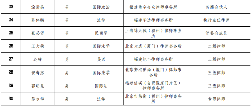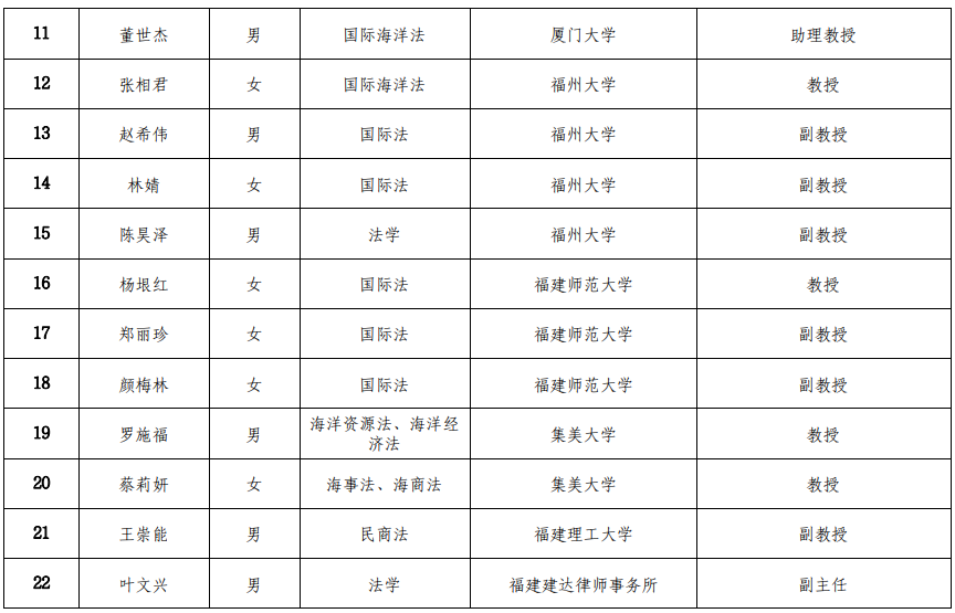 附件:福建省涉外海洋领域法律专家库第一批拟入库专家名单