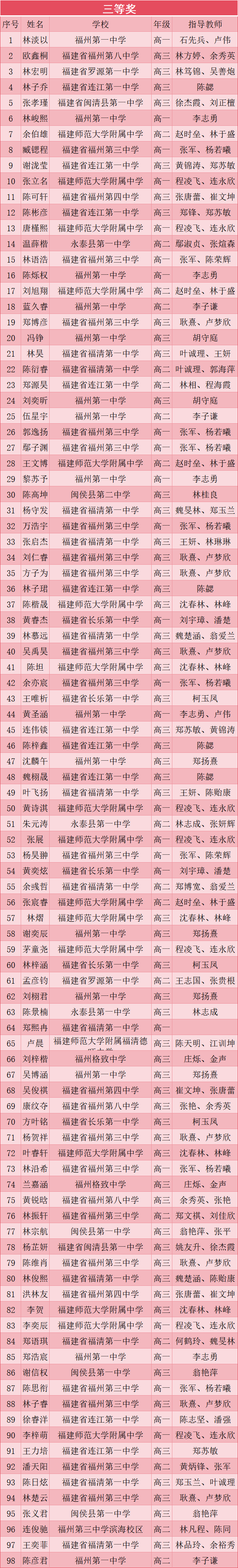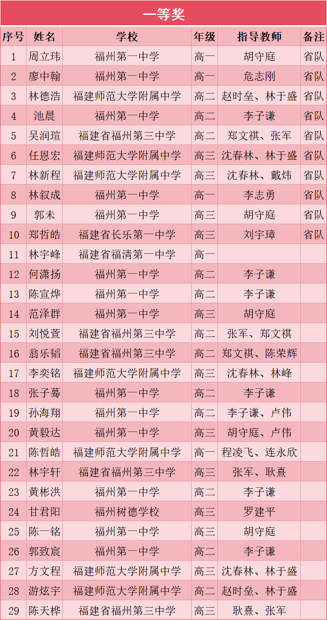 其中,福州地区有29名获一等奖选手,10名选手入选省队,人数均居全省第一。入选省队的选手分别来自——