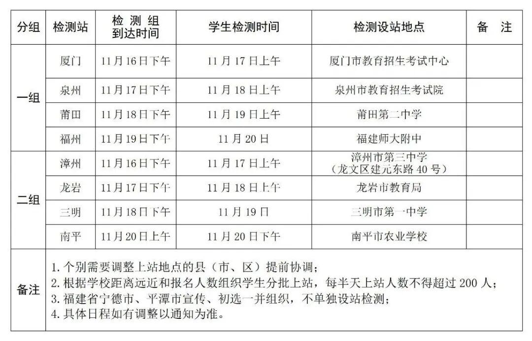 根据2026年度空军招飞工作安排,11月17日至11月20日,空军招飞局南京选拔中心将派初选组赴福建省各地市对报考空军飞行学员的学生进行检测。