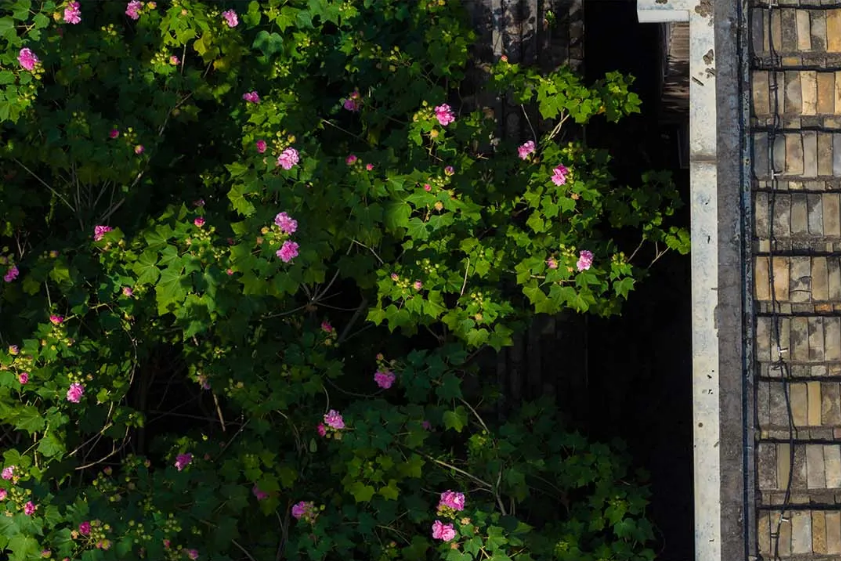 ▲木芙蓉盛开,与传统建筑相映成趣 包华/摄
