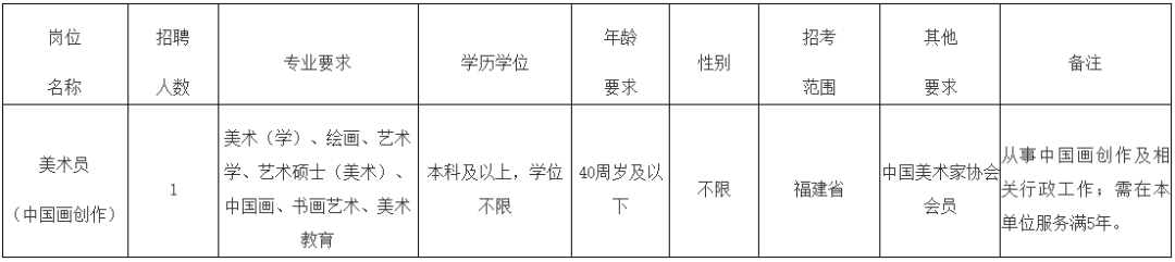 龙岩市文学艺术界联合会公开招聘专业技术人员1名