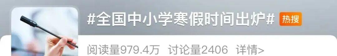 近日,#全国中小学寒假时间出炉#相关内容冲上热搜。