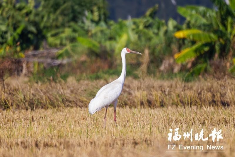 记者从福建省观鸟协会了解到,这是首次通过影像记录到东岱镇山堂村有白鹤出现。白鹤对栖息地环境要求极为苛刻,通常选择人为干扰少、生态环境优越、食物丰富的区域栖息。