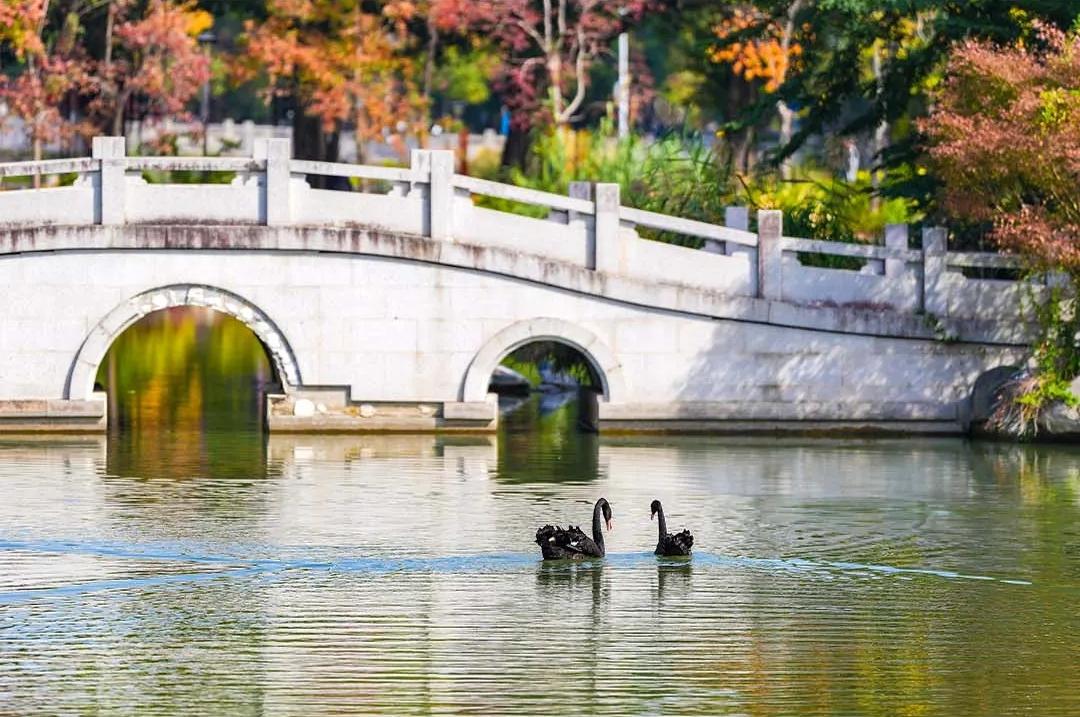 周末时光,如果你约上三五好友一起来逛黎明湖公园,可能会看见一对黑天鹅游弋在黎明湖上,成为这座古典园林间的一道诗意景致。