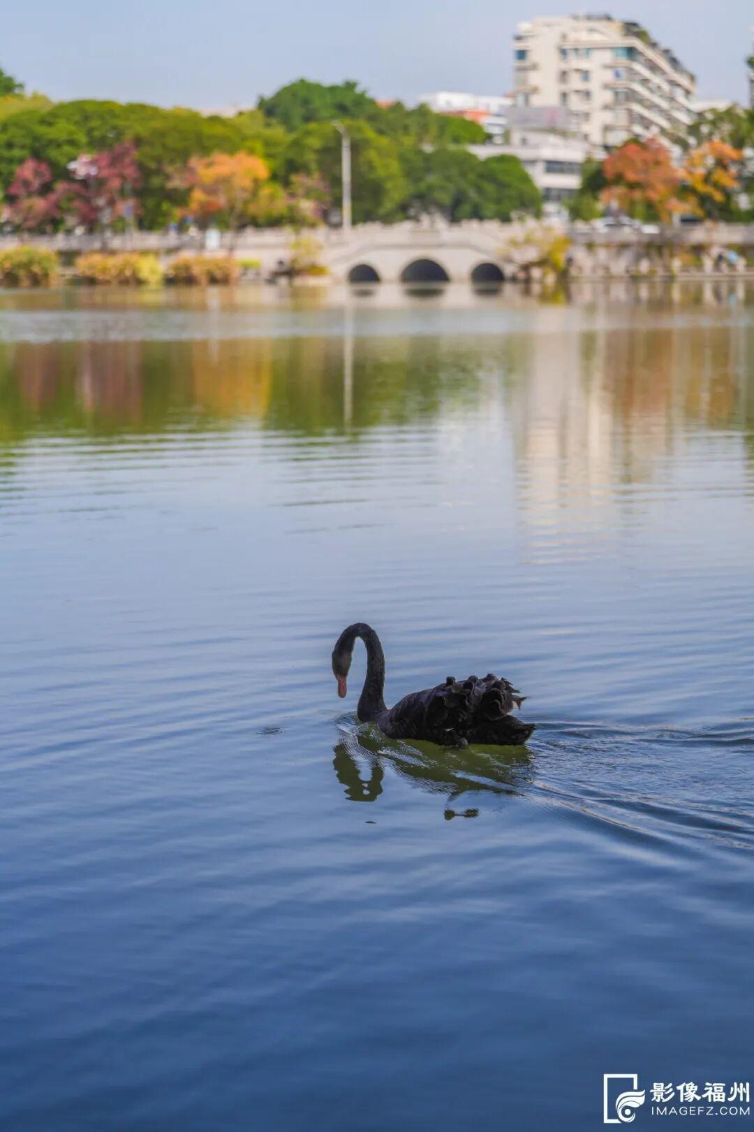 黑天鹅属于我国引进的动物品种,原产自澳大利亚,常年栖息于海岸、海湾、湖泊等水域,是一种珍贵的观赏珍禽。在福州,随着黑天鹅家族的壮大,它们的后代来到了市区其他公园,当前在市区不少公园和高校都可以看到黑天鹅的身影。