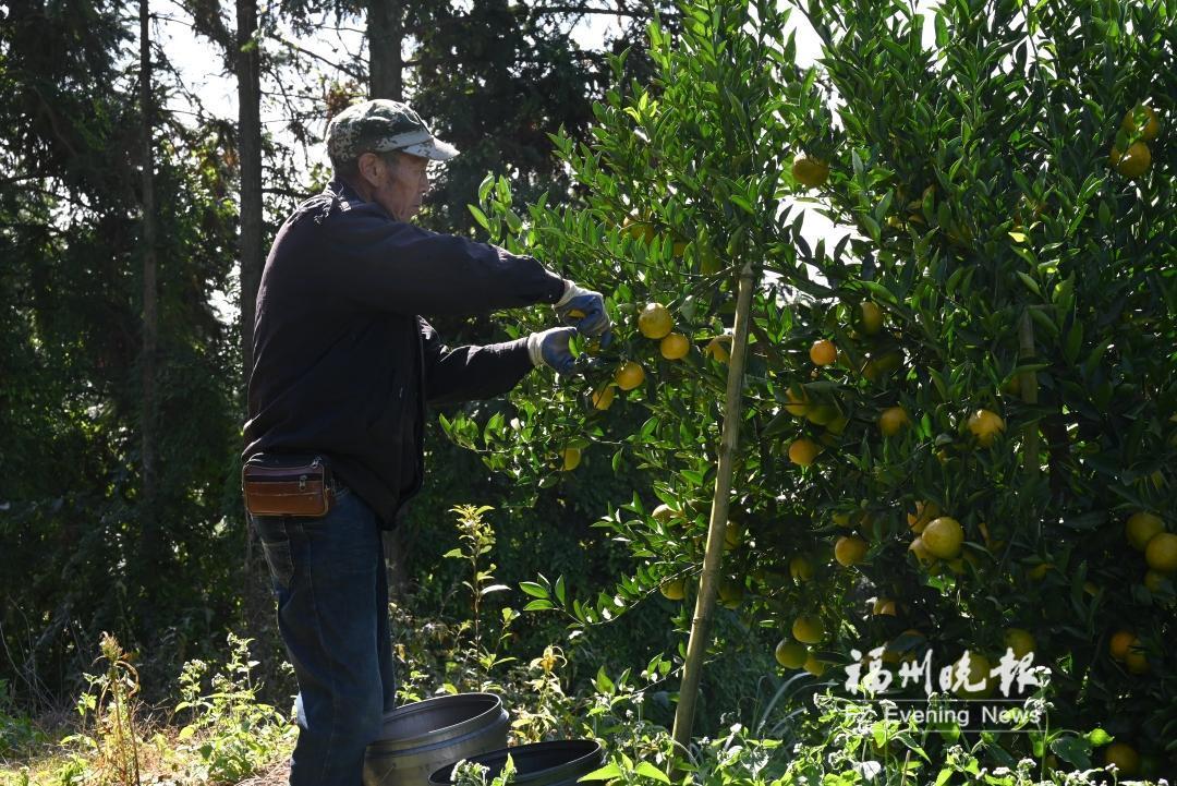 近日,闽侯县大湖乡仙山村的近百亩苦橘迎来采收期。