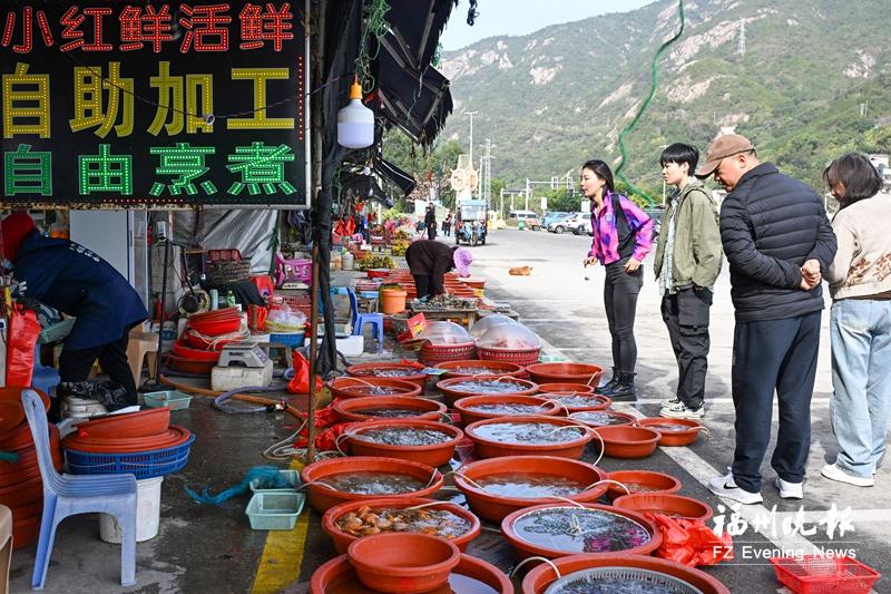 产业兴,百姓富。活蹦乱跳的九节虾、肉满膏肥的皮皮虾、张牙舞爪的大螃蟹、肥美鲜甜的大生蚝……蛎坞村308省道旁的蛎坞渔市和蛤沙村口环海公路旁的蛤沙渔市,已成为筱埕镇最繁忙的渔获交易市场,每天客流量可达上千人。村民们在家门口就能支起海鲜摊子,不时就有过路客上门淘鲜,扫码支付。村民们告别了过去挑着扁担到处吆喝的日子。