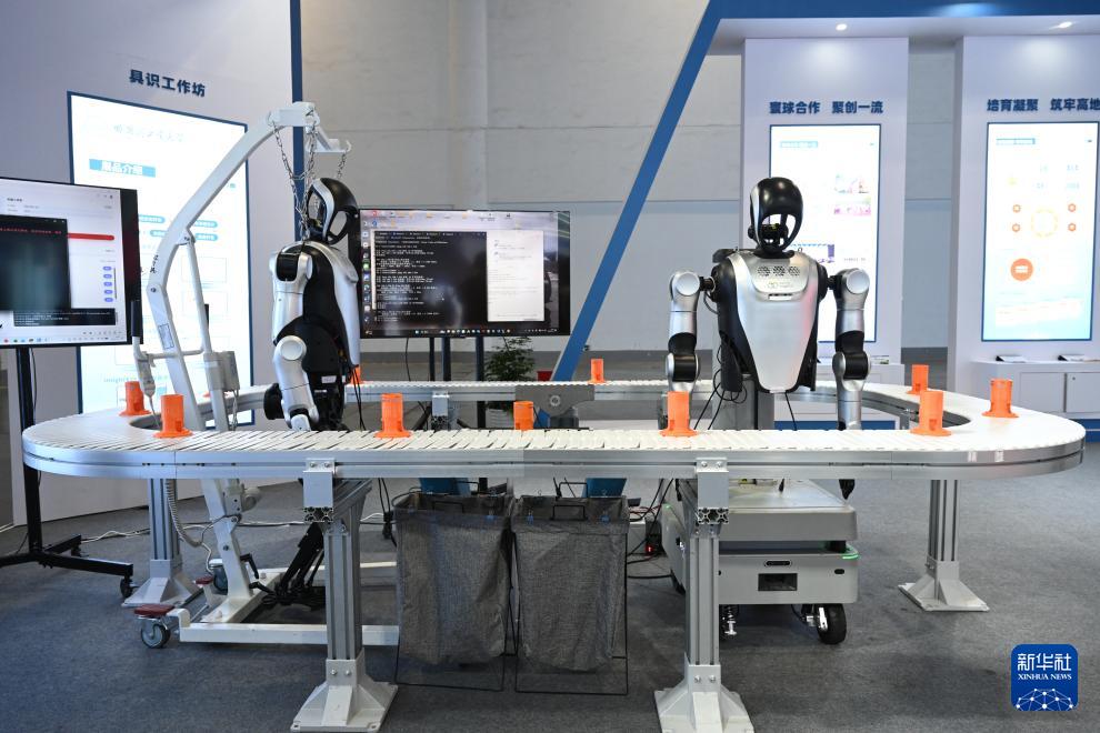 这是12月1日在“侨智汇”成果发布区拍摄的自动分拣机器人。新华社记者 周义 摄