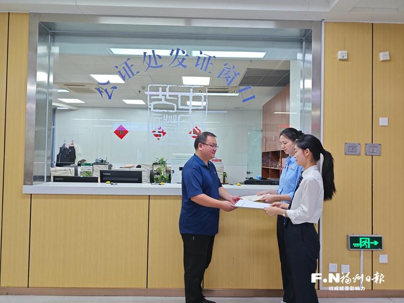 市民(左)同时领到继承权公证书和变更后的营业执照。陈凤敏 摄