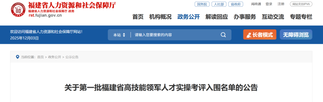 根据《福建省人力资源和社会保障厅 福建省工业和信息化厅 福建省人民政府国有资产监督管理委员会 福建省工商业联合会关于开展第一批福建省高技能领军人才遴选工作的通知》精神,经申报、资格审核、书面评审等工作环节,按符合条件人员书面评审成绩从高到低确定各项目进入实操考评人员名单,每个遴选项目不超过10名。现将实操考评入围名单和有关工作事项公告如下: