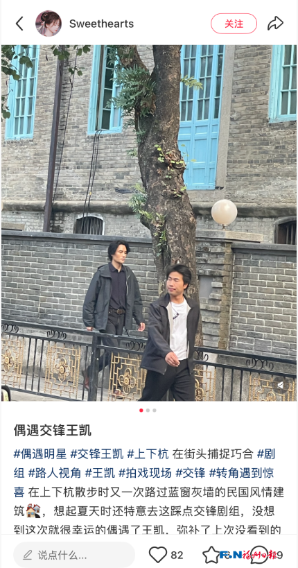 王凯、彭昱畅、欧豪……最近,众多明星频频现身福州街头!不少网友发帖称在鼓楼、台江、闽侯……都偶遇了剧组拍戏。