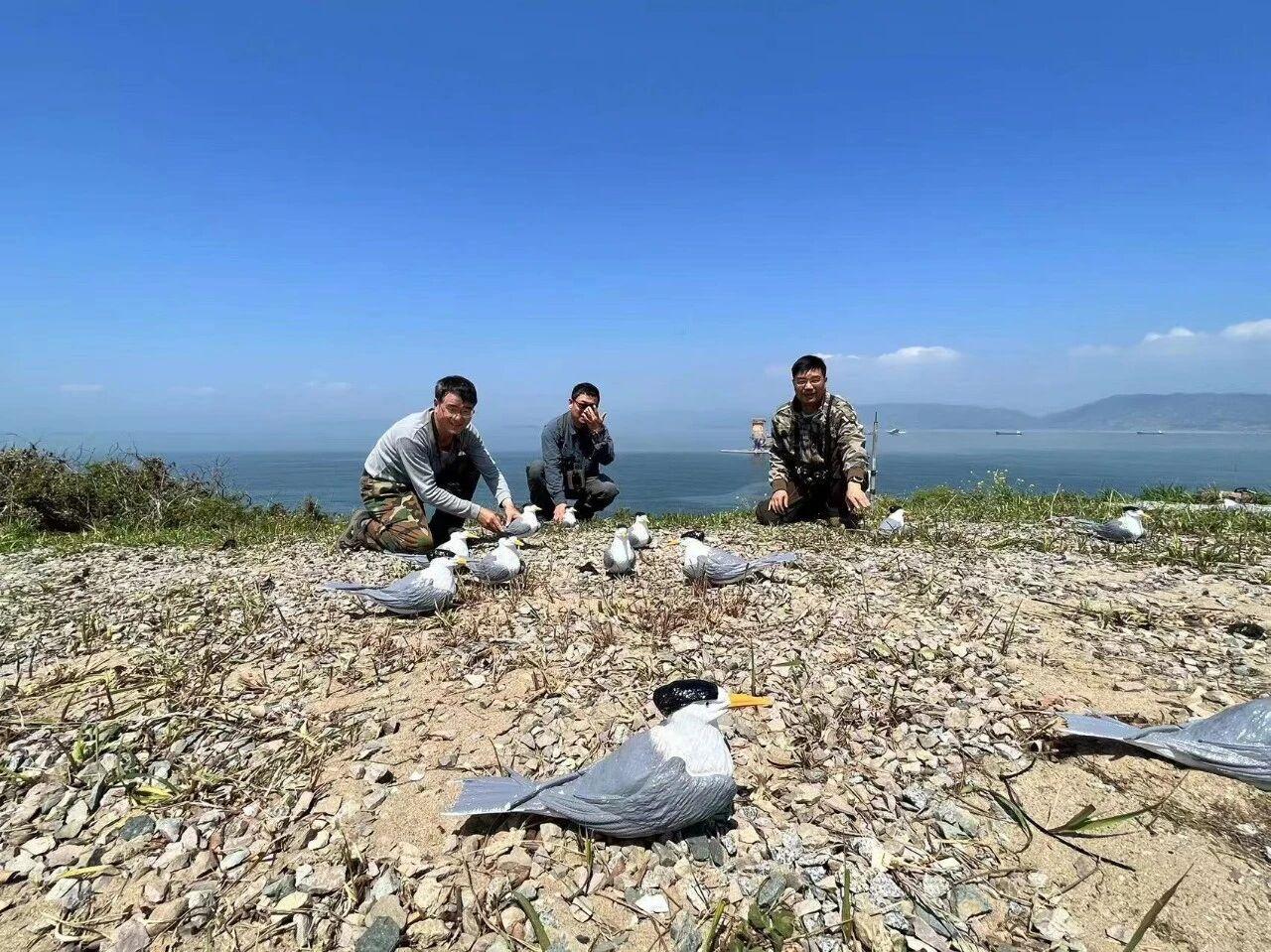栩栩如生的燕鸥模型,加上太阳能音箱自动播放的大凤头燕鸥鸣叫声,小岛仿佛成了一座欢声鼎沸的客栈,翘首以盼与燕鸥的“一年之约”。