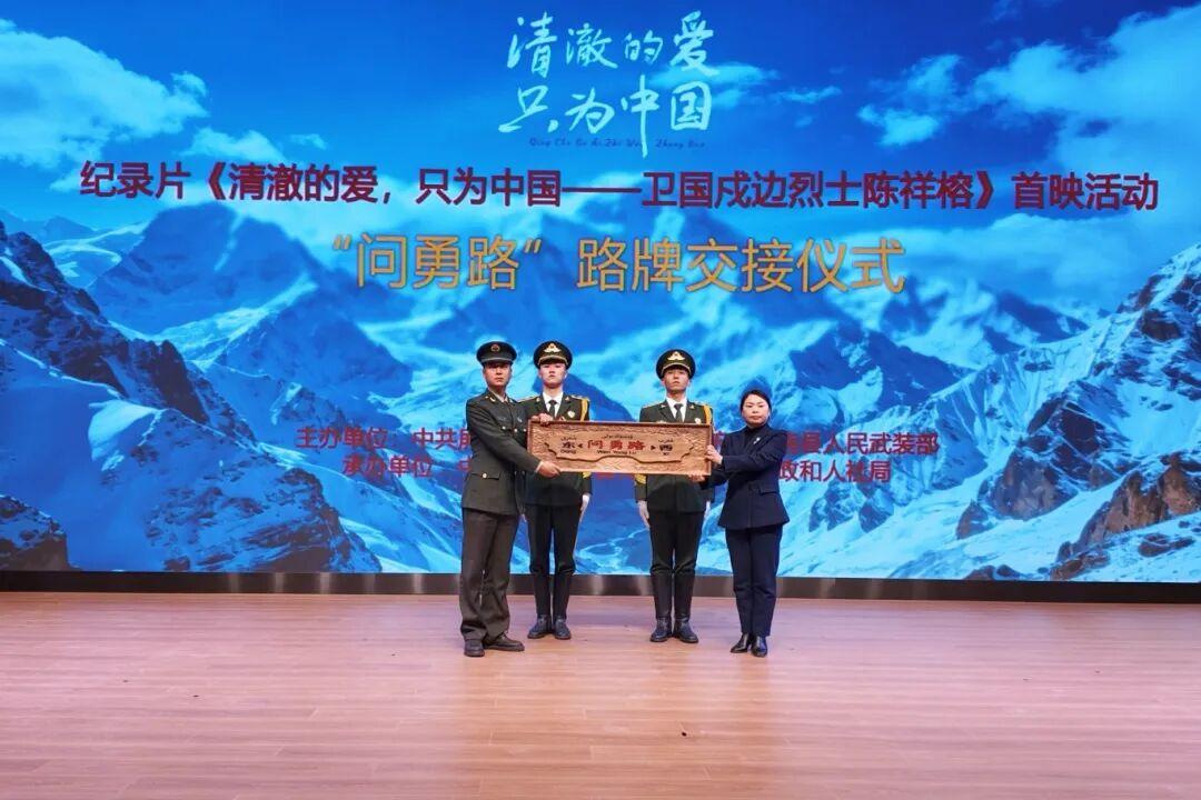 在首映仪式上,举行了“问勇路”路牌交接仪式,来自新疆和田县问勇仪仗队带着当地人民的深情厚谊,将意义非凡的“问勇路”路牌送至英雄故乡。让“问勇”精神在屏南大地落地生根,成为跨越地域的精神共鸣。当天,屏南县在烈士陵园组织开展缅怀纪念活动,来自新疆维吾尔自治区和田县的问勇国旗护卫队还在屏南县祥榕中学举行了庄严的升旗仪式。