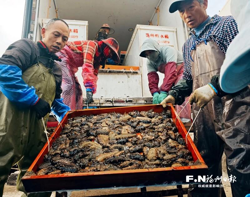 “11月中旬以来,我们陆续将海参苗从北方运到南方。”养殖户陈森介绍,目前投放的苗种规格主要集中在“6至12个头”及“8至20个头”(指每500克海参的只数)。罗源湾已成为“北参南养”的重要基地,每年冬季,北方海参苗南迁至此过冬育肥,形成特色产业循环。