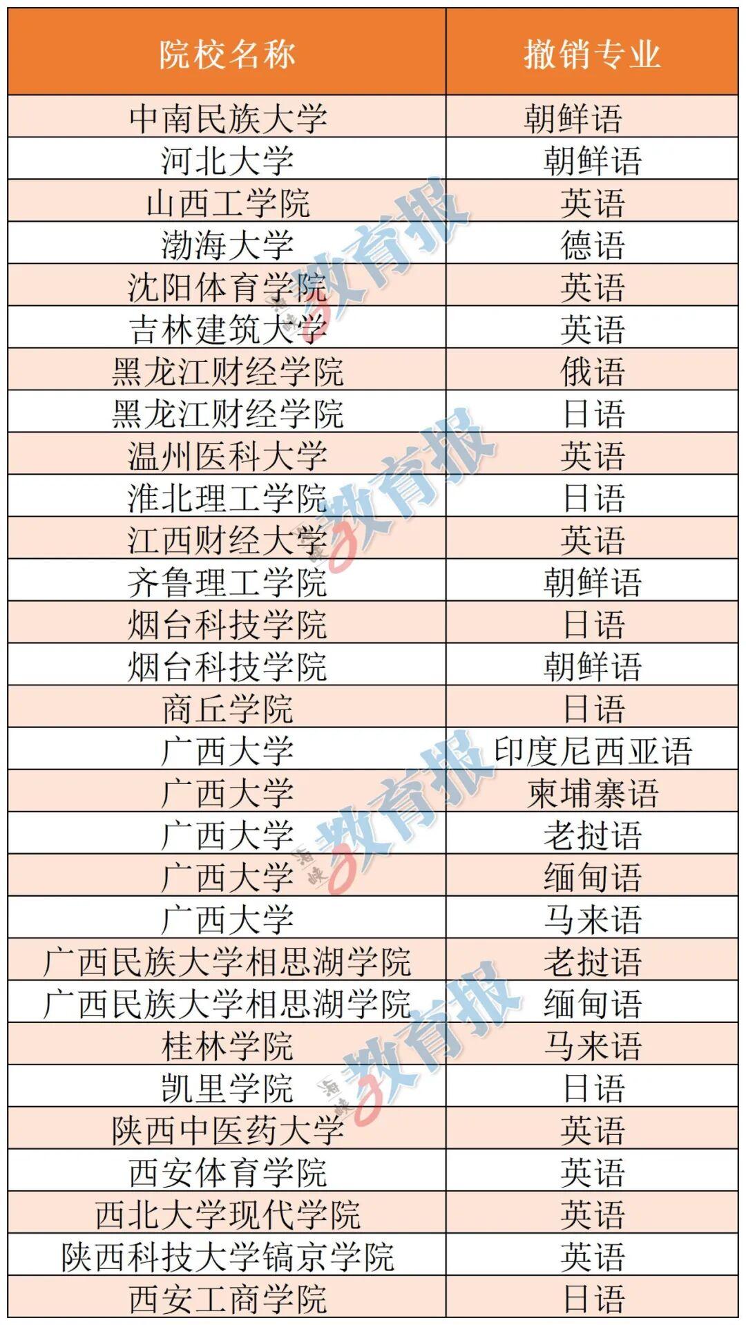 ▲教育部公布的2021年度普通高等学校本科专业备案和审批结果,以上是外语类专业撤销的学校名单