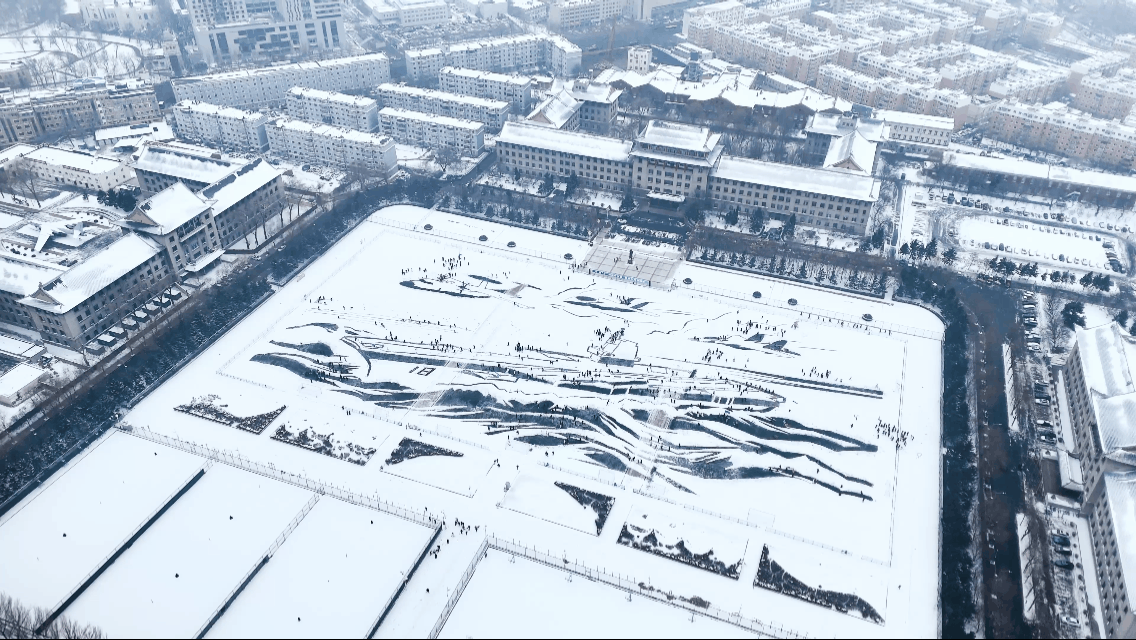 1200余名师生以雪为卷、以锹为笔,冒着零下十几摄氏度的低温,绘制了大国重器的雄姿,更通过北斗卫星定位等专业技术,实现了一场冰雪艺术与硬核科技的碰撞。