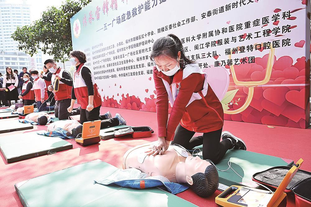 福州市红十字会培训中心为群众演示AED操作流程。叶诚 摄