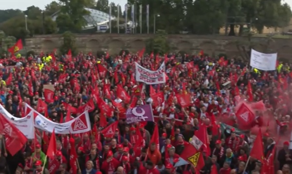 25日,超3000名大众汽车工人举行示威 德媒视频截图