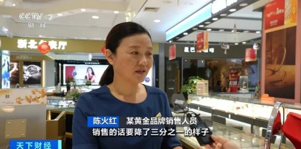 在长兴的一家大型购物中心,琳琅满目的黄金饰品摆放在柜台中,但门庭冷落。销售人员告诉记者,以往国庆前夕是销售旺季,比如结婚三金,生日、节日送礼等。而近期,大多数消费者会持观望态度。
