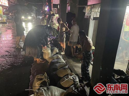 将沙袋排列整齐,防止水位升高倒灌。仓山区融媒体中心供图