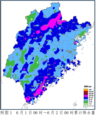 雨雨雨雨!连日来,福建暴雨持续开启“倒水”模式,据统计,6月1日06时~2日06时累计雨量共有72个县(市、区)520个乡镇超过50毫米,其中16个县(市、区)58个乡镇超过100毫米,以漳浦赤岭畲族乡218毫米为最大,最大小时雨量为漳浦赤土乡113.1毫米,共有13个县(市、区)17个乡镇出现8级雷雨大风。