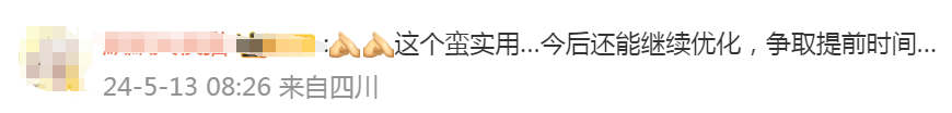 对此,有网友表示:“这个蛮实用……今后还能继续优化,争取提前时间……”“快给其他地区适配”。