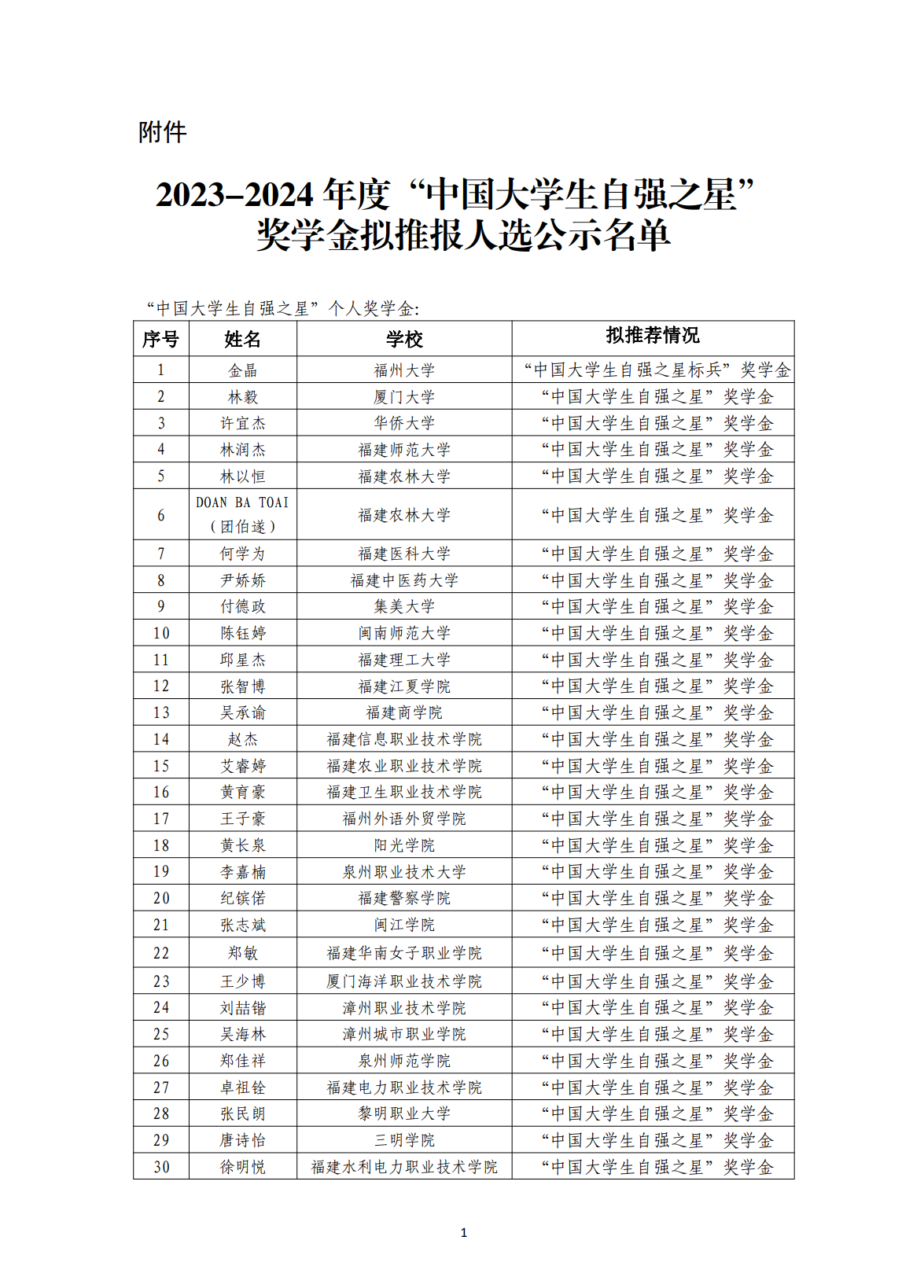 附件:2023—2024年度“中国大学生自强之星”奖学金拟推报人选公示名单