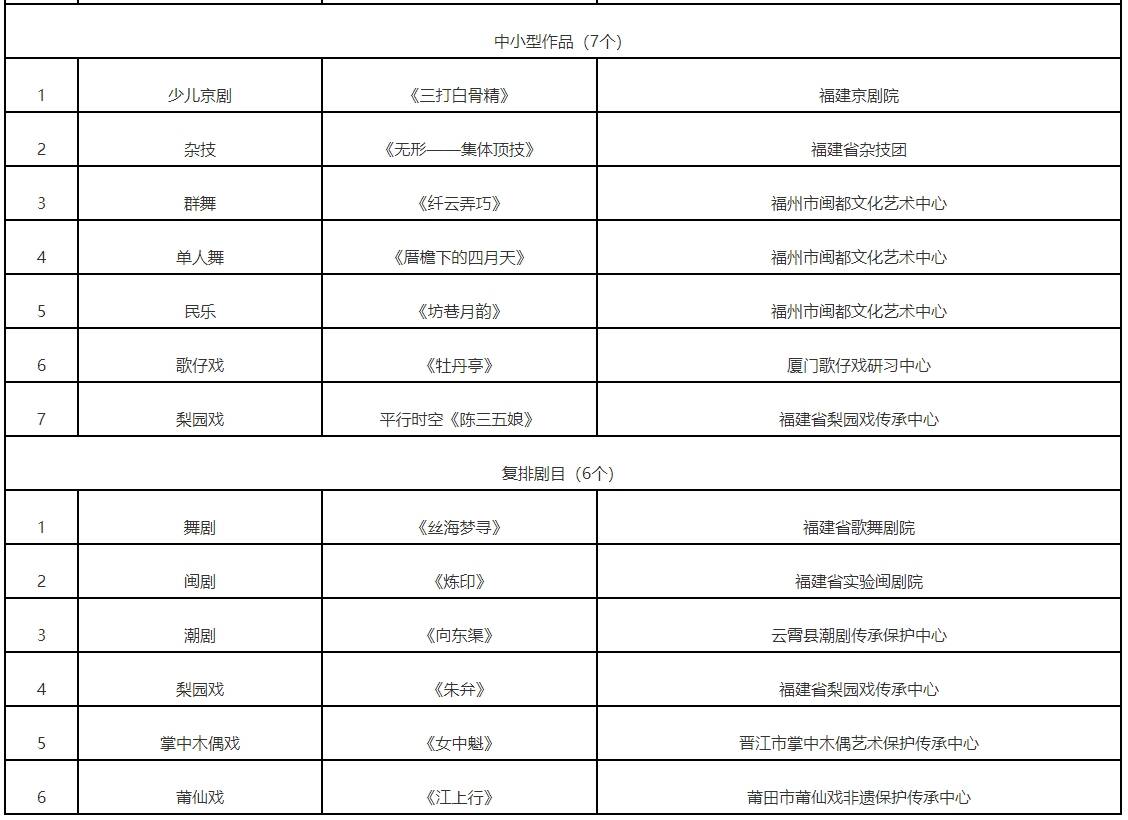 2024年度福建省舞台艺术和美术精品工程拟入选重点项目名单