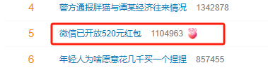 今天0点一过,微信红包的金额上限就从200元调整为520元,方便情侣之间互相表达心意。