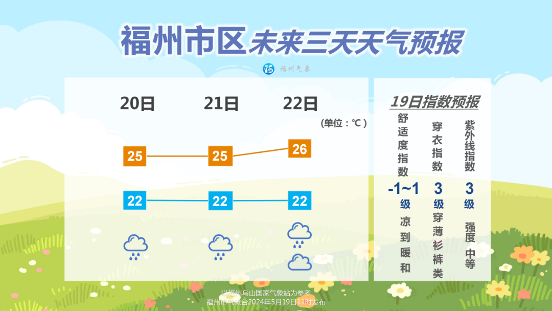 根据福州市气象部门消息,今明两天,福州雨势有所增强,全市范围内会出现中到大雨,部分乡镇还可能出现暴雨。22日雨势有所减弱,但部分乡镇仍有暴雨,近期需要特别注意防范局地强降雨和强对流天气可能引发的山洪、地质灾害。