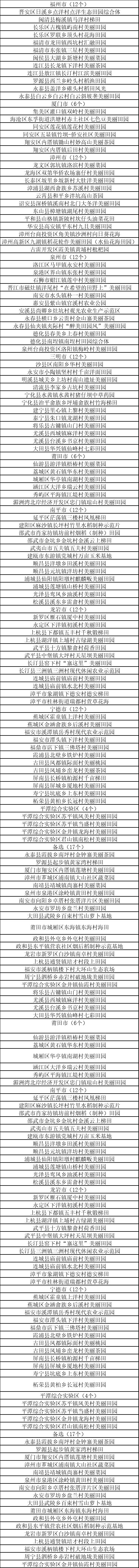 《福建2024年乡村“五个美丽”建设典型名单公示》展现出福建在乡村建设上的积极成果与不断探索。这份公示名单如同一张乡村振兴的成绩单,涵盖了众多乡村在美丽庭院、美丽乡村微景观、美丽小流域、美丽田园、美丽乡村休闲旅游点等“五个美丽”方面的优秀典范。这些典型乡村犹如繁星点点,分布在八闽大地。无论是沿海的乡村,还是山区的村落,都在积极践行绿色发展理念,挖掘自身特色,以独特的魅力参与到乡村建设的伟大进程中,为福建的乡村发展注入新活力,成为人们向往的诗意田园之所。