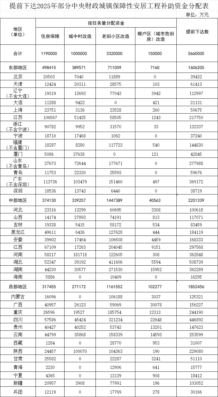 近日,财政部发布通知,提前下达2025年部分中央财政城镇保障性安居工程补助资金预算566亿元。