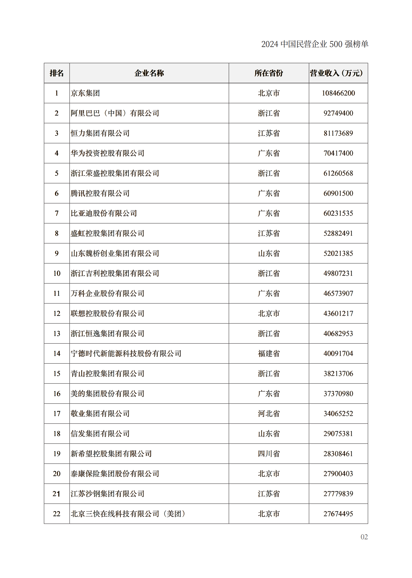 会上发布了“2024中国民营企业500强”“2024中国制造业民营企业500强”“2024中国服务业民营企业100强”榜单。其中,福建14家企业上榜“2024中国民营企业500强”。一起来看名单↓↓