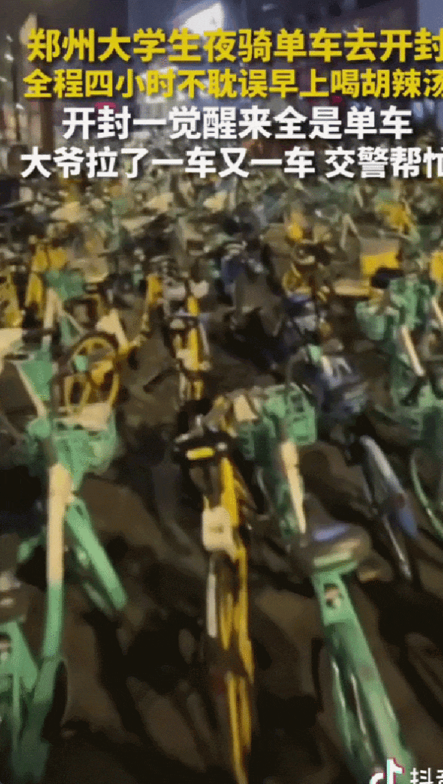 第二天早上醒来的开封人天塌了:耶嘿~咋这么多共享单车?