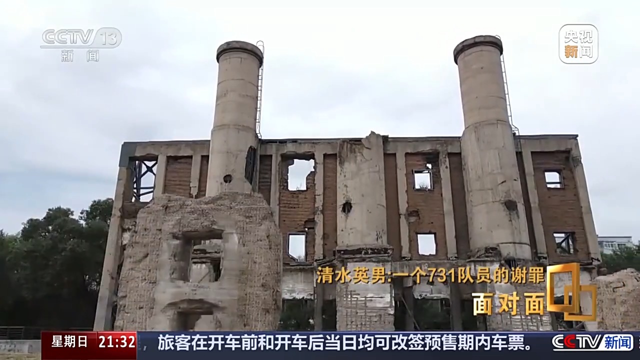 2024年8月13日,时隔79年,清水英男重返哈尔滨。当年731部队的核心建筑,俗称“四方楼”,是细菌实验室和日军用活人做实验的特设监狱,1945年日军战败逃亡时将其炸毁。在遗址内的“谢罪与不战和平之碑”前,清水英男多次鞠躬谢罪。这是一座由日本民间友好人士于2011年集资建立的石碑,碑文中写道:“侵华日军第七三一部队在中国犯下了世界历史上史无前例的国家级罪行。”