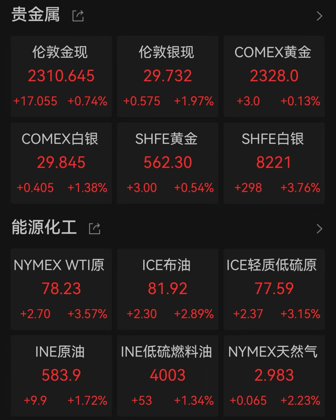大宗市场方面,经历短暂跳水后,隔夜国际金价、油价携手反弹。