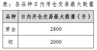 根据《上海期货交易所交易规则》《上海期货交易所风险控制管理办法》《上海期货交易所异常交易行为管理办法》的有关规定,经研究决定,自2024年4月12日(即4月11日晚连续交易)起,上海期货交易所在黄金和铜期货品种实施交易限额。非期货公司会员、客户在上述品种各合约日内开仓交易最大数量如下: