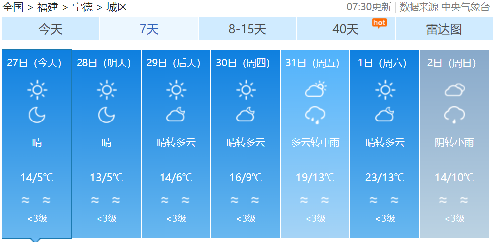 气温方面,27日—29日,受强冷空气影响,最低气温西部北部地区城区可达-3~0°C,有结冰。中南部沿海地区城区可达4~9°C,其余城区0~4°C,有霜或霜冻。
