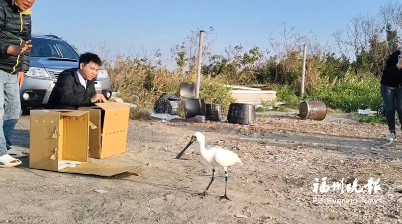 黑脸琵鹭被放生。